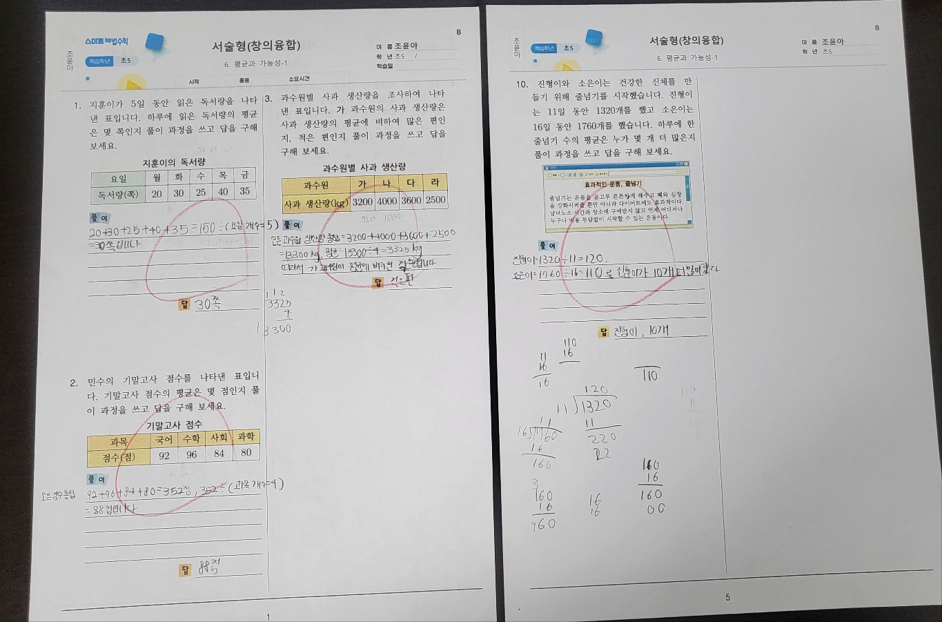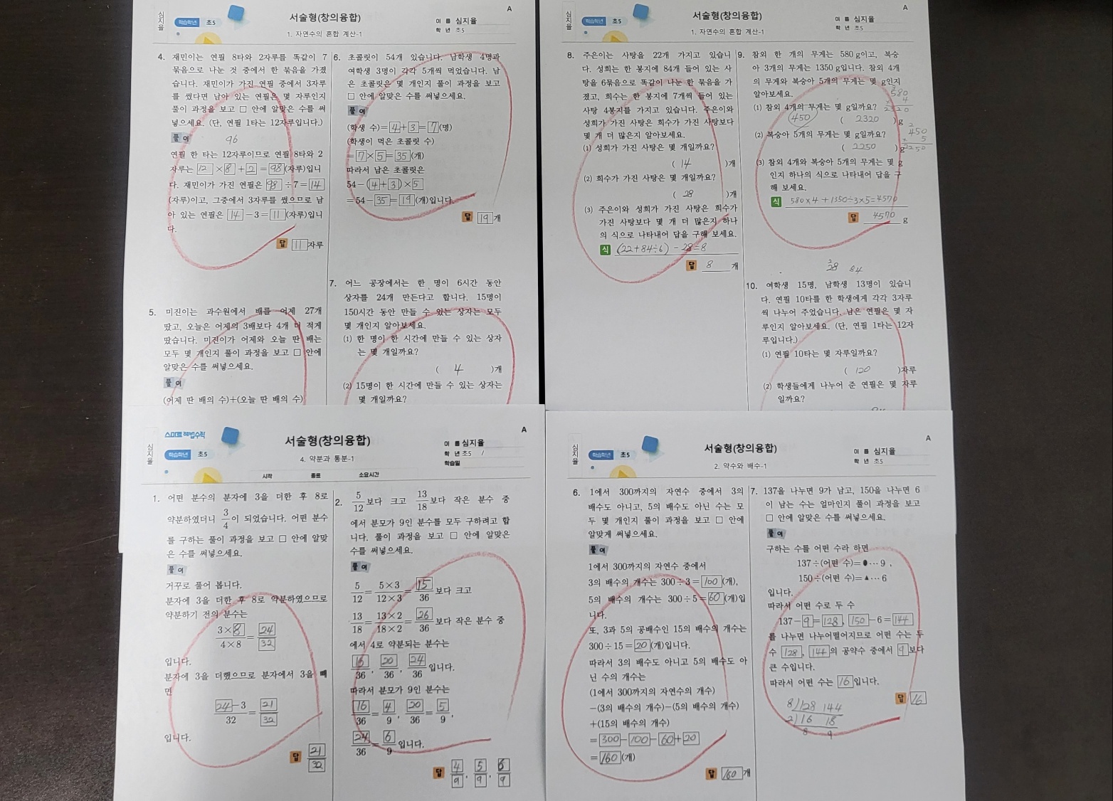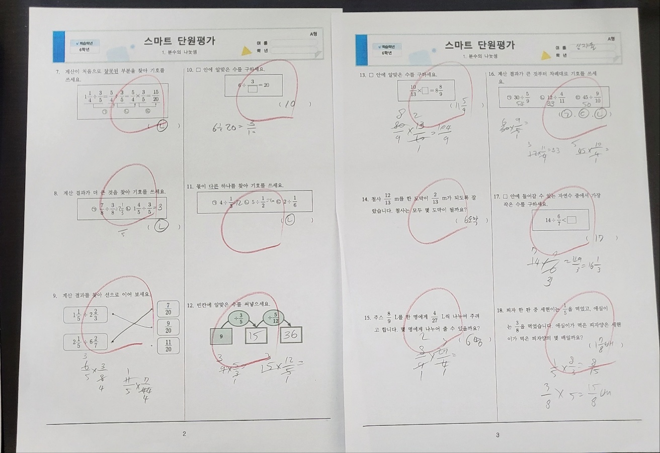 서술형과 단원평가 학습 문제지